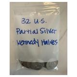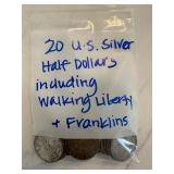 - U.S. Silver and Partial silver half dollars including Franklins, Walking Liberty, and Kennedy Halves