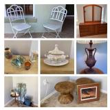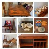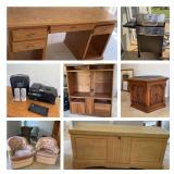 Small sale that includes Franciscan Desert Rose service for 8, dresser, dining table/chairs, lighted display cabinet, Guardian Service cookware, Lane trunk, Blue Rhino grill, rolling kitchen cart, Necchi sewing machine and more. EVERYTHING MUST GO!