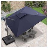 (Lot 119) PURPLE LEAF 11FT Cantilever Outdoor Umbrellas Large Patio Umbrella Hanging Double Top Square Offset Umbrella with 360°Rotation Tilting Umbrella Outdoor Patio, Navy Blue