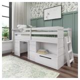 (Lot 146) Max & Lily Modern Farmhouse Low Loft Bed, Twin Bed Frame For Kids With 1 Drawer, White Wash