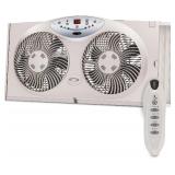 Item Is New And Refundable Only Before The Item Leaves The Building AND If Different Than Described. MSRP: $70 VERSATILE REVERSIBLE AIRFLOW - Multi-functional electronic blades can be set to draw in outdoor fresh air, exhaust out indoor warm air or simultaneously exchange airflow for maximum cooling efficiency 3 SPEED SETTINGS - Select your optimal airflow with low, medium and high settings for a customized cooling experience PROGRAMMABLE THERMOSTAT - Automatically turn the window fan on and off based on desired selected temperature setting and monitor current room temperature on an easy-to-read digital LED screen display with dimmer function MADE TO FIT - Designed to fit most double hung, vertical slider and casement windows and includes a built-in accordion extender panel and an additional extender panel to ensure a secure fit ranging from 24" to 36"