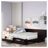 INCOMPLETE - Sofa Bed with 2 Drawers , Extendable Twin Size Wooden Daybed with Trundle Bed and 2 Storage Drawers for Boys Girls Bedroom,No Boxspring Needed (Espresso), King