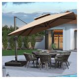 Item Is New And Refundable Only Before The Item Leaves The Building AND If Different Than Described. MSRP: $659 UPGRADED FABRIC】 High quality 240/gsm yarn dyed polyester fabric, UV resistant, water-repellent and fadeless 【STURDY & DURABLE】 All-aluminum umbrella bones and 8 heavy-duty ribs, anti-oxidation spray painted, resist corrosion and rust 【ROTATION & TILTING】 This cantilever umbrella can be rotated 360 degrees easily, in addition, the 6-level adjustable tilt operation system also makes tilting the deck umbrella effortless 【DOUBLE TOP DESIGN】 Double top air vent to allow enough air flow and heat venting, make your patio umbrellas more stable against windy condition 【MODERN STYLE】The canopy size of this offset umbrella is 11' X 11', grey spray painted is more modern and matches your home better