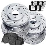 Item Is New And Refundable Only Before The Item Leaves The Building AND If Different Than Described. MSRP: $700 All-in-One Complete Brake Kit Replacement: eLine Series Front & Rear Brake Kit comes with (4) high performance brake rotors and (8) low-dust ceramic brake pads. High Performance Brake Rotors: Made of G3000 grade cast iron with zinc finish for ultimate rust protection. Built with O.E.M specifications in mind, no modification required. Ultimate Stopping Power: Precision-drilled holes and countersunk design prevents cracking and build up, enhances ventilation and dissipates heat. Designed for smoother and quieter stopping, built for longer lasting, consistent braking performance. Low Dust & Noise: Brake pads come with shims to eliminate noise. Low dust, asbestos free special ceramic formulation provides excellent fade resistance. Top choice for front and rear brake pads replacement.