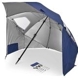 Item Is New And Refundable Only Before The Item Leaves The Building AND If Different Than Described. MSRP: $75 9-foot umbrella canopy features UPF 50 plus sun and weather protection for the beach, camping, sporting events, concerts and festivals Oversized umbrella provides privacy and maximum protection from the sun’s rays and rain with two patented side panels; stow-away clips store the flaps when not in use A heavy-duty 1.25” center pole for maximum durability; zippered windows allow for airflow and prevent the umbrella from blowing away
