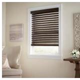 Item Is New And Refundable Only Before The Item Leaves The Building AND If Different Than Described. MSRP: $36 The Espresso Cordless 2.5 in. Premium Faux Wood Blind for Window by Home Decorators Collection brings beauty and style to your home. Cordless faux wood blinds add a cleaner look and are safer for children and pets. These premium faux wood blinds are designed with 25% larger slats for a greater outside view. Specially designed "no-hole" slats offer total light and privacy control. The 3 in. decorative crown valance adds a contemporary style to your home and complements any decor. Room darkening slats are made from heat and moisture resistant material that is energy efficient and will not warp or crack. These premium faux wood blinds are ideally used for bathrooms, kitchens and garages. For maximum light and privacy control, rotate the slats downward to ensure proper closure.