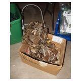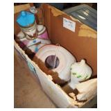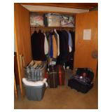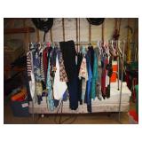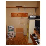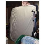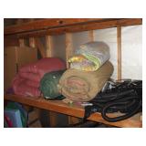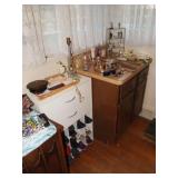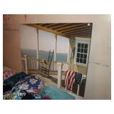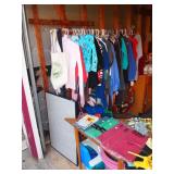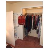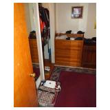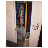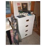Master Bedroom iComfort EFX full-size mattress on stand Maroon and green area rug (needs cleaning) Mid-century tallboy dresser and regular dresser Childcraft by Smith 4-drawer dresser which converts to changing table 2-drawer, 2-door kitchen cabinet 2-drawer white pressed wood cabinet 2-drawer wood nightstand (matches nightstand in boy's bedroom) White pressed wood shoe holder Thomas Kinkade framed art Sleeping Stone Cottage GIP Cottages, Church 1056/2050 Fabric art in waterside and flamingoes themes Vintage mirrors and brush Health-O-Meter scale Women's clothing, size 2XL including blouses, sweaters, skirt and top sets, slips Women's shoes, size 6.5 Hats, scarves, gloves, purses Men's Calloway golf shoes, size 10.5, new in box Umbrellas