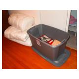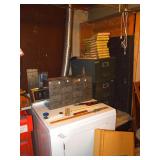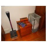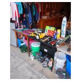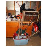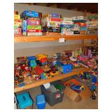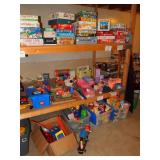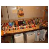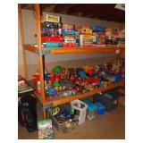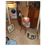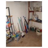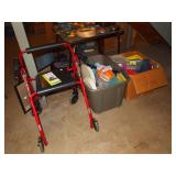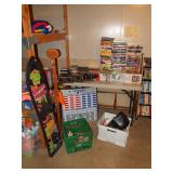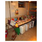 Basement Century Furniture mid-century tallboy dresser (matches dresser on first level) Wood desk chair Footstool with vinyl and metal base Lakewood space heater Fedders dehumidifier Energy Star dehumidifier Lots of toys, some vintage Board games, some vintage Major League Baseball Standings Board Sega Genesis Books including fiction, non-fiction, children's Cassette tapes VHS tapes Christmas décor Men's and women's jackets and coats Decorator pillows Luggage and backpacks Food Cleaning supplies Ironing board Window fans NOVA rolling walker Plastic food storage Adresse file drawers, small Assorted hand tools 6-foot aluminum ladder