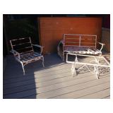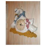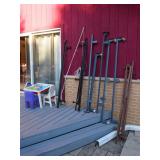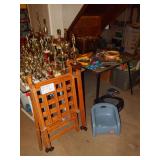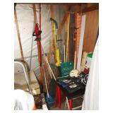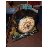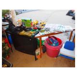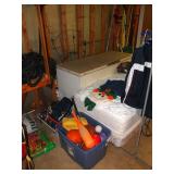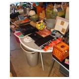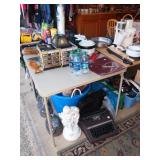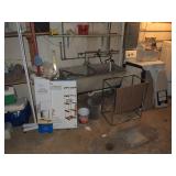 Patio/Garage Maple and glass lighted display cabinet (matches cabinet in house) White iron patio furniture Metal umbrella table Children's beach chairs Little Tikes picnic table and small table, as-is Wood horses Wood ladders Twin-size mattress and box spring Queen-size mattress and box spring Metal bed frames Concrete yard animals Sleeping bags Women's and men's clothing General Electric window air conditioning unit Snow shovels, rakes, yard tools Placemats Assorted glassware and mugs Halloween and Fall decorations Easter décor Green ceramic lamp Partial sets of dishes Pots and pans Aladdin Tempreserve Salton hot plate Utensils Craftsman electric mulching lawn mower Brother Correct-O-Rite typewriter Antique Ansonia mantle clock, as-is Hamilton Sangamo Synchronous Motor Clock, style S-402 Christmas blow mold decorations Cow Donkey Camel Shepherd and sheep Three Kings Baby Jesus, Mary and Joseph Large chest freezer Baby and children's clothing
