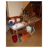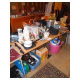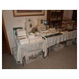 Second and Third Family Rooms Century Furniture mid-century dresser (matching dresser in basement) Mid-century nightstand 2 white wicker dressers Wood shelf for top of a chest or dresser 2-foot plastic shelf Framed and unframed Thomas Kinkade art Thomas Kinkade wall hangings John Valentine Artware lamps Stained glass floor lamp Very large glass and metal lamp Vintage lamp Burger King Disney glasses Boyd's Bears and Friends Snowbabies Small Madame Alexander dolls from McDonald's The World of Krystonia statues Precious Moments items LOTS of Beanie Babies (a good 500!) Large selection of David Winter cottages Large selection of Department 56 items Once Upon A Time by Band Creations statues Green Glass Village statues Fitz and Floyd items Assorted collector plates Fireplace tools TV trays Small wood magazine rack Large wood jewelry box Verichron quartz wall clock with Westminster Chime Assorted trophies Sports memorabilia Danbury Mint bird statues Lexmark printer Envision monitor Lenovo speakers Sony DVD/VCR Sansui VCR Hitachi VCR Sony boom box, model CFD-110 Epson printer, model R320 HP Photosmart printer Sega Saturn Dynex monitor Keyboards White rotary dial phone Kermit The Frog telephone