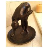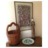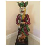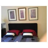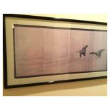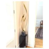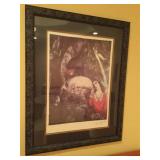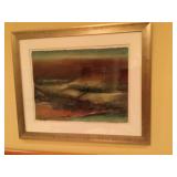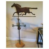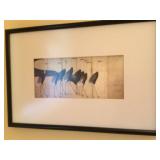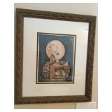 Art: Art by Marion Hornbuckle Santa Fe Winter Solstice #3 acrylic by Sandy Boone Mac Chagall framed signed & numbered print 3 tall wood carved cat Gold metal sculpture dated Oct. 1984 on black stand Der Bengalische Tieger Felis Tigris Woman sculpture Copper horse weather vane on stand Modigliani Woman with Red Hair framed poster