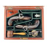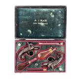 - 3005 RARE! ANTIQUE CASED PAIR OF ENGRAVED PHILADELPHIA DERINGER PERCUSSION POCKET PISTOLS WITH DESIRABLE SAN FRANCISCO RETAILER A.J. PLATE MARKINGS