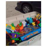 Honda scooter; Hoveround type power chair; vintage spinet desk; set of dining room chairs; oak end table; nice sofa table; vintage lamps; nice rocker with caned seat and back; vintage waterfall dressing table with mirror; patio table; new Sauder video cabinet; outdoor decor; lots of books and magazines; two stroller/car seat combinations; kid's toys; toddler bed; vintage electronics; antique Singer sewing machine in cabinet; hundreds of toy cars and trucks (all sizes--lots are vintage); knitting machine; vintage clothing; vintage sewing notions; some seasonal decor; vintage vinyl LPs; general household item and much more!!!!