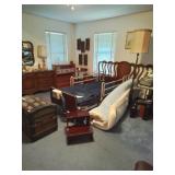 Everything must go! Light fixtures, Appliances, furniture, cabinets, doors and more! Everything in this house is Vintage and beautiful. The front hall fixture and the dining room fixtures are truly vintage.. Living room: Blue upholstered swivel chairs, painted china cabinet, 2 square end tables, unusual floor lamps, coffee table, upholstered long sofa, Asian lamps, unique decor, artwork, ornate coffee table, silverplate, table lamps, floor fans, Asian chest, antique cash register and more. Dining Room: Dining room table with 1 leaf, 4 side chairs and 2 arm chairs with custom table pads, Lenox crystal glasses with platinum rim (water, ice tea and dessert sizes) brand new in boxes, cut glass, crystal table ware and glasses, vintage stem ware, Buffet/server, Hutch, vintage Wedgewood embossed queens ware, Delft blue, Wedgewood "Golden fleece china, Farber ware "Ashbury 3088 Claire II china Royal Worchester "Eversham", Royal Winton "Grimwades" square plates and much more serving pieces, tea cups and sauces, and beautiful wine glasses. Kitchen: GE cooktop/stove, Whirlpool white side by side refrigerator, corn flower blue corning ware, pyrex, lots of pots and pans pyrex, utensils bowls, serving bowls, mixing bowls, glasses, brand new wine glasses, beer glasses, vintage fondue small appliances, cook ware, bake ware, small appliances and more, Round Kitchen table with 4 chairs and more. Laundry Room: Vases, Maytag Atlantis oversize capacity plus dryer, Whirlpool washer, Kenmore upright refrigerator and more... Den: Beautiful long drop leaf table, vintage toys -Mr. Rogers, deetail metal miniture Knight figures, He-man figures, little tykes, Tupperware toys, playschool workbench, Mr potato head and many more, games, 5 MahJongg sets (some brand new still in plastic), table lamps, game table & chairs, books, home decor and collectibles, vinyl record albums, 45's, fire place utensils and accessories, candle holders, small shelf, Mrs. Bairds dominos (never opened), artwork, books, bar accessories, Crosley record player/stereo and much more... Bedroom 1: Painted bedroom furniture - Dresser with mirror, chest of drawers, lingerie chest, headboard and matching nightstand, hat boxes, picture frames, baskets, great lawyers bookcase, vanity chair, asian decor, blur & white plates, artwork, clothing, hats, gold decor and more... Bedroom 2: Christmas decorations, white house collectible ornaments, santa's, ornaments, spode china, small desk, dresser with mirror, 2 twin beds with headboards, ribbons, and more... Master: Long dresser with mirror, lamps, home decor, clothing, hats, hospital bed, mattress topper, bed stool, various chairs, trunk, sea shells, office chair, desk, office desk lamps, pens, Royal typewriter, Remington rand adding machine, smith corona typewriter, bell & howell zoomatic camera, brownie movie camera, kodak ertralite … and more... Garage/Outdoor: Tonka trucks in great shape, vintage Schwinn bicycle, pedal car, coke wooden crates, outdoor pots, medical equipment, furniture, outdoor yard tools, ladders, flash lights, electrical cords and much more...