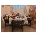 This estate sale has many fun items! Furniture, silk and dried flowers, Oak kitchen table and 4 chairs, Bedroom suite, Several end tables, Refrigerator, Table and 4 rolling chairs, 2 Hutches, Numerous lamps, Decor, Linens, Christmas decorations, File cabinets, Shelving units, Teekwood and iron bench and 2 chairs, Tools chest, Weedeater, Pots, Outdoor chairs, Desks, Pictures, Nuts/Bolts in jars, Rolling carts and so much more!! |