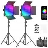 Neewer 2 Packs 660 PRO RGB LED Video Light with App Control Stand Kit, 360° Full Color, 50W Dimmable Bi-Color 3200K~5600K Video Lighting CRI 97+ for Gaming/Streaming/Zoom/YouTube/Webex/Photography