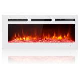 Electric Fireplace Insert Wall Mounted Freestanding Heater with Remote Control, 1500/750W(40 inch,White)