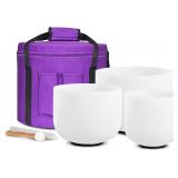 CVNC 7"G+9"E+11"C 3 PCS Frosted Crystal Singing Bowls Set with Free Bag Mallets & Rubber O-rings for Sound Healing Bath Therapy Meditation Yoga Instrument Zen