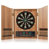 A Stylish Dart Board Cabinet Set with elegant design just like a wall art displayed in your house, A electronic dart board with classic walnut finish fits perfectly to any type of indoor decoration, and excellent craftsmanship on this cabinet also classes up your decor. 【ALL PACK IN ONE】An advanced combination of 12 official darts plastic tip sets, 88 Plastic darts for an Electronic Dart Board (Dart Board Electronic Scoreboard inside), 1*instruction manual, 1*adapter, supporting the power cord to turn on the Electric Dart Board for playing.