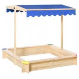 Outsunny Wooden Sandbox w/Adjustable Canopy, Children Outdoor Playset Weather Resistant 47" L x 47" W x 47" H, Natural & Blue