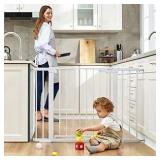 This white gate is suitable for most doors! Our large walk thru gate makes it easier to walk when holding the baby. Great choice for new parents! Your curious crawlers will be blocked by the baby gate at the top of stairs because we design the double-lock safety release which makes it difficult for toddlers to open the gate (aged 6-36 months). Babysitting your babies!!!