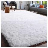 White Fluffy Shag Area Rugs for Bedroom 6x9