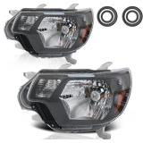 Dreenfl Anti-misting Headlight Assemblies Fit for 2012 2013 2014 2015 Toyota Tacoma 12 13 14 15 Tacoma Front Light Headlamp Driver And Passenger Side (Black Housing Amber Reflector)