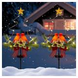 SOWSUN Solar Christmas Decorations Outdoor LED Lights, Waterproof Red Birds Xmas Tree Pathway Lights, Cemetery Grave Decorations,Star Christmas Ornament Stakes for Garden Lawn Yard Cemetery, Set of 2