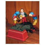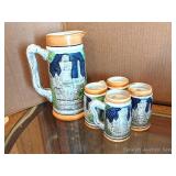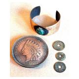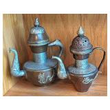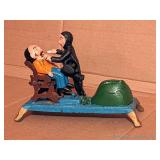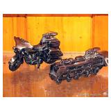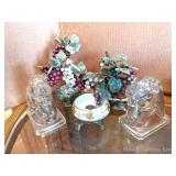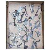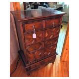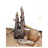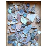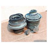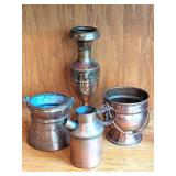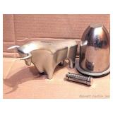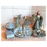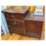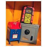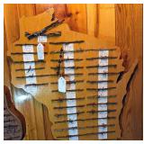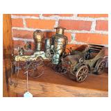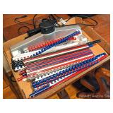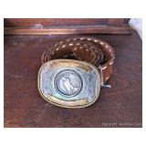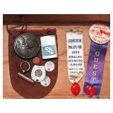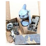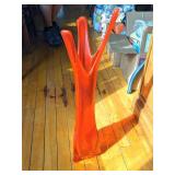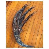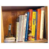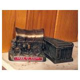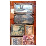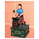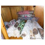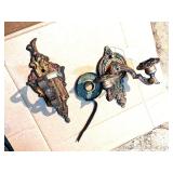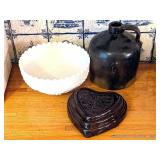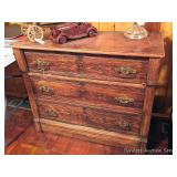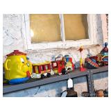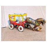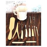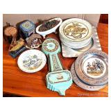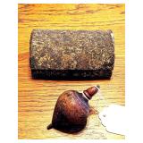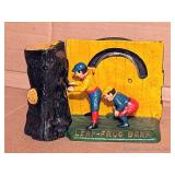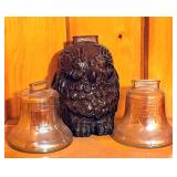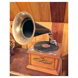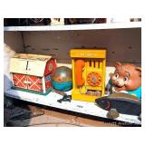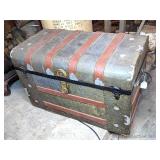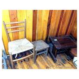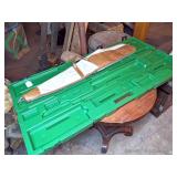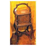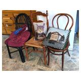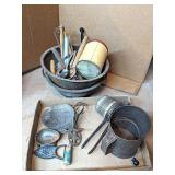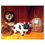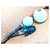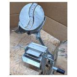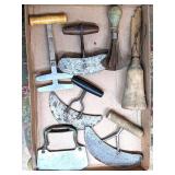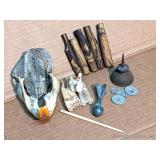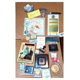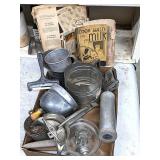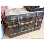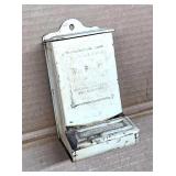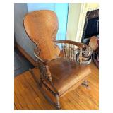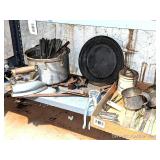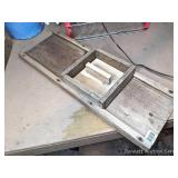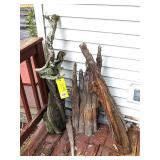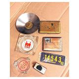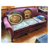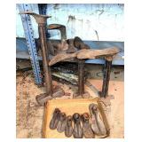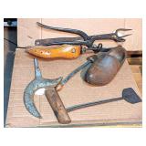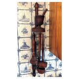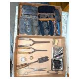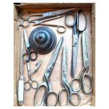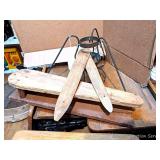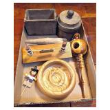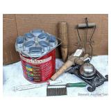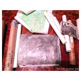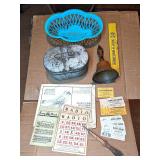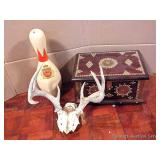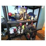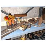 1 Wooden candlesticks, wooden deer clock, cardinal painted corrugated metal frame decor, and brass or similar pitcher and more. Frame measures approx 17" Tallest candlestick measures 8-1/2" tall. 2 Eye-catching African tribal style walking stick or decor measures 36" tall. 3 Copper colored tea kettle with ceramic handle and knob in good condition. Measures 9" over handle. 4 Copper colored tea kettle with black handle. Lid doesn't seat easily, measures 9-1/2" over handle. Made in Germany. 5 9-1/2" x 14" flat of rocks, stones. Seller notes crested barite, purpurite, dendrite (manganese) picture rock, white tip sillenite, hematite in quartz matrix, purple lepidolite. 6 Pair of copper colored tea kettles with wooden handles. Measure 8" over handle and are in good condition. Made in Portugal. 7 15" x 10" box of flat stones and rock slabs. Perfect for jewelry makers, crafters or the geologist in your life. 8 "Wooden" you love to buy this? Wooden goblet, cup and decorations, artificial fruit basket, deer baskets, duck basket, chicken baskets and other woven baskets. Goblet measures 8" tall, larger chicken basket is 12" long 9 Green metal baker's shelf stands 68" tall x 28" wide and shelves are 13" deep. Fairly sturdy. 10 Northwood Fireplace Screen with Oak leaf motif measures 32" tall x 50" wide. Appears to be brand new. 11 2 shelves of extension cords, power strips, various light bulbs, and more. 12 No shipping. An assortment of household cleaning products, sponges, pest control, etc. 13 Sears Craftsman Electric Glue Gun kit, model no 80523, with extra glue sticks. Gun measures approx 9" long 14 Five cast iron trivets, longest is 9-1/2" Four feature a ceramic tile decoration. 15 Screwdrivers, claw hammers, pruners, pliers, and more. Larger hammer measures 13" long. 16 Coleman water cooler measures 17" over handle and 10" across. Broken finger wing but does not affect button use. 17 Entertainer's special! 2 small coffee pots, pancake cup, angel food cake pans, 3-tier Wilson aluminum tray, and more. White coffee pot measures 14" tall. 18 Contents of 2 cabinets, incl child's broom, Swiffers, dust pan, less than 1/2 bag of Morton rock salt, older Sunbeam clothing iron, and more. Basket contains gloves, hats, flashlights. 19 Will ship without liquids. 2 flats of pet supplies incl dog and cat toys, dishes, unopened and opened medications, leashes, collars. 20 Six cast iron trivets, longest is 8", owl is 4-1/2" 7000 Delightfully small antique Wehrle fire safe was once owned by the Wisconsin Telephone Company. Safe retains original artwork and graphics, and is only 1-1/2' x 1-1/2' x 2' high. Comes with combination. Located on main floor and will readily roll out of the house, but have a plan for loading it. 463 Located upstairs, bring help to remove. Vintage Innsbruck and other cigarette holders, plus ashtrays, a rubber bank stamp for Lowe's Junk and Auto Wrecking of Phillips WI, more. All in good condition. 464 Located upstairs, bring help to remove. Local Centennial plated incl Prentice and the First Winter in Phillips; plus a 3-3/4" wide Phillips Fire Centennial horseshoe with nails. Larger plate about 10-3/4" wide. All pieces in good condition. 465 Located upstairs, bring help to remove. Five The American Story books and Indian Heritage and Great American West books. Incl Defiant Chiefs, Settling The West, World War II, more. Tallest books about 11". In good condition. 466 Located upstairs, bring help to remove. Nicely framed and matted watercolor by Jen Ann Kirchmeier measures about 31" x 24" over frame. Please bring Phillips screwdriver to remove screws through frame. 467 Located upstairs, bring help to remove. Antique loveseat with carved wooden arms, feet, back rest. Fairly sturdy piece is in pretty nice condition. Measures about 4' long and 18" to seat. 468 Located upstairs, bring help to remove. Two shelves of vintage books as pictured. Great for projects or to read this winter. Oldest copyright I found at a quick comparison of three books was 1926 in The Golden Beast. 469 Located upstairs, bring help to remove. Three antique player piano rolls, plus a 6-1/2" bell, vintage 7" Coca-Cola plate and an antique miniature Alaskan souvenir apron. Old chip noted on plate and a couple tears on apron. Bell retains clapper and sounds good. 470 Located upstairs, bring help to remove. 8-point antler rack, 15" bowling pin, 13" lockable wooden box. Nice pieces. 471 Located upstairs, bring help to remove. Sturdy chair is about 27" over arms. 472 Located upstairs, bring help to remove. Wonderful hanging lamp with pretty green glass and eye catching fringe. Measures about 16" x 16" x 24" tall overall. In good condition, works. Dust or similar noted, wipe it down and enjoy! 473 Located upstairs, bring help to remove. 28" Backgammon / checker board with another game on the back. Add nets and use the bag of pieces included. 474 Located upstairs, bring help to remove. Sturdy couch would be great in the porch or cabin. Measures about 80" x 33" x 18" over seat. Upholstery looks pretty good condition, clean it up and enjoy. 475 Located upstairs, bring help to remove. Antique violin with tag inside that reads 1917; and a Sears Roebuck & Co. Supertone guitar. Measure about 24" and 36" long. Violin looks fairly sound with no cracks noted in wood. A few cracks noted in guitar body. Great decoration or restoration pieces. 476 Located upstairs, bring help to remove. Antique Violin-Uke by the Marxochime Colony of Michigan, and a simple 13-1/2" harp style piece. A few cracks near top of back of larger and one string loose, smaller good condition. Neat pieces to display or use. 477 Located upstairs, bring help to remove. Two classy books incl Norman Rockwell's America and Simple Acts of Faith with Norman Rockwell pictured. Neat reads, larger about 11-1/2". 478 Located upstairs, bring help and tools to remove from wall. Nicely framed painting by Jen Ann Kirchmeier is about 36" x 30". 479 Located upstairs, bring help to remove