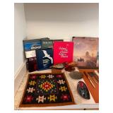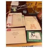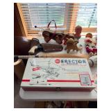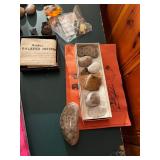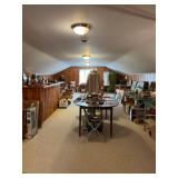 Second floor: vintage, Toys, erector set, G.I., Joe, vintage prints, vintage, paint by number paintings, vintage clothing, vintage, suitcases, vintage sailor’s uniform, footlockers, seashells, vintage chemistry pyrex glass, vintage prints vintage, Coleman lantern, vintage Coleman two burner stove, vintage electronics, books, mineral specimens, fossils.