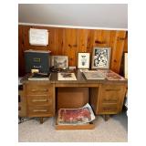Main floor: Helen Gilbert licomos line shifter, Durval Pereira oil on canvas, Gorman’s Arm chair,Gorman’s mid-century sofa,Irving Amen pencil signed lithograph, Ruth Schloss prints, Ruth Schloss portfolio, Asian watercolors, asian woodblock prints, Gided rubbing framed, dual 1246 turntable, Macintosh, C-8 preamplifier,Onkyo Tx-4500,Helen Gilbert lithographs,Ken Bushnell print, Habit De gardinier print, mid century modern drop leaf dining table, mid century, Marano Art Glass, Waterford stemware,Miriam Nampeyo pottery,set of Foo dogs, Bertha Cohen Carnaval, mono print, late century buffet,Monteiro acrylic on canvas, South American verre églomisé paintings,Golden technologies, power recliner,Samuel Rosen Gouacne, Rosenthal, china, IMS SRL Italian dining room chairs, house of Denmark dining table, Arno Joe Colombo cup and saucer set, Dansk China, wedgewood perfection, bone, china, mid Century, Modern Furniture , Lucite, side table, antique player piano, South American tapestries, mid century, modern Selig sofa, Records, tapes, CDs,VHS,Thomas Belsky print,Paulo Menten print, needlepoint textiles, aztec style tapestries,set of Bassett, five drawer dressers, medical bed, twin, headboard bookcase, South American framed paper medallion,Cheetah Zocks pastel, Navajo Wall textile, Peruvian tapestry,framed Ecuador fabric, Drexel cabinet, vintage bar cabinet, leather office chair and ottoman, late century coffee table, vintage cameras, polaroid, Minolta, Nikon, Olympus, vintage audio, Sony Walkman, vintage Schwinn aerodyne, vintage wood podium, Sligh grandfather clock,Paul Omente painting on canvas,Broyhill sleeper sofa, mid century, modern Selig arm chair with ottoman, native American sand painting, mineral specimens, geodes, mid century modern lamps, Art books.