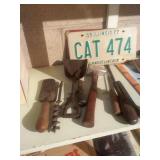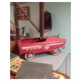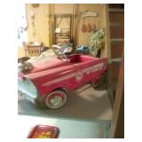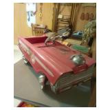 ITEMS BEING OFFERED INCLUDE: 4 piece mid-century Stanley bedroom set (headboard, dresser with mirror, gentleman's chest and nightstand); 4 piece mid-century Thomasville bedroom set (headboard, dresser with mirror, nightstand and gentleman's chest); sofa; recliner; three swivel rockers; drop-front ladies writing desk with chair; gorgeous antique oak stacked bookcase; round oak table with leaf and four chairs; marble top walnut washstand; very nice lighted corner cabinet; TV stand; server with drop leaves; several small occasional tables; coffee table and matching end tables; 1960s Fire Dept pedal car; enamel top kitchen work table; drop leaf table with four chairs; two antique showcases; vintage metal pantry cabinets; pool table with accessories; vintage blanket chest; several very nice clocks; lamps; .ladies clothing; some seasonal decor; lots of vintage/antique advertising items from Central Illinois businesses; vintage/antique tools including a KeenKutter bench vises in very nice condition; lots of very nice antique glassware; several Hummel collectibles; costume/fashion jewelry; cast iron Dutch oven and frying pan; kitchenwares; old books including a 1890 Tazewell County plat book and lots of other great items.