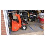 WHAT IS IN THIS AUCTION? This online auction includes furniture such as a file cabinet, sewing machine table, shelf, rocking chair, bookcase, media cabinet, coffee table, bedframe and others, crystal stemware, mirrors, wall art, lamps, planters, gardening supplies, silverplate, wood, barometer, home hardware, Haviland, Crown Ducal and other china, small kitchen appliances, books, inversion table, tools, Ariens snowblower and more!