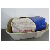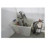 Trash Barrel With Miscellaneous Household Items, Flagpole, Fiberglass Marker Stakes