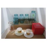 Vintage Blue Ball Jars, 1 Pint Glass Milk Bottle, Collectible Dishes