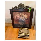Paint Decorated Tin Panel and (5) Frames