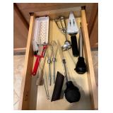 dish towels; measuring devices; various kitchen gadgets 34