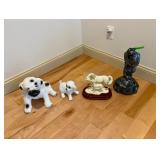 Electric fondue pot; wooden trencher; souffle dish; glass center bowl 27