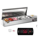 (96)VEVOR Refrigerated Condiment Prep Station, 60-Inch, 16.8Qt Sandwich/Salad Prep Table with 4 1/3 Pans & 4 1/6 Pans, 150W Salad Bar with 304 Stainless Body and Cover Temp Adjuster One-Click Defrosting