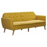 (37)Novogratz Tallulah Memory Foam Couch, Mustard Yellow Velvet Futon, Full, 2144379N
