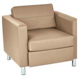 (49)Office Star Pacific Armchair with Padded Box Spring Seats and Silver Finish Legs, Dillon Buff Faux Leather
