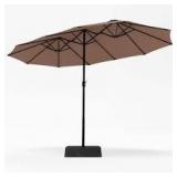 PHI VILLA 15 ft. Market Patio Umbrella 2-Side in Beige With Base and Sandbags