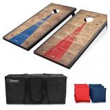 - COMPLETE CORNHOLE SET: Full Size 4 ft x 2 ft Cornhole Boards with 8 All-Weather Bean Bags, Carrying Case and Rules