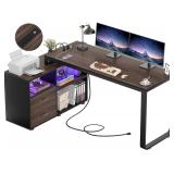 Homieasy L Shaped Desk with File Cabinet & Power Outlet, Reversible 55 Inch Large Corner Computer Desks with LED Strip, L-Shaped Computer Desk with Drawers and Storage Shelves, Espresso