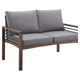 Walker Edison 2 Person Outdoor Patio Modern Wood and Metal Loveseat with Washable Cushions All Weather Backyard Conversation Garden Poolside Balcony, 48 Inch, Dark Brown and Grey