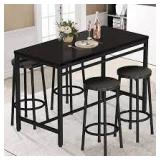 AWQM 5 Piece Bar Table Set, Kitchen Counter Height Table with 4 Stools, Home Kitchen Breakfast Table, Black