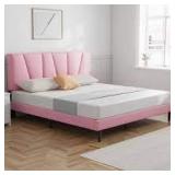 Molblly - Ambria Bed Frame Upholstered Platform with Headboard,QUEEN