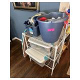 METAL SHELF UNIT W CONTENTS / IRONING BOARD MORE |