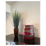 LOT OF MIXED DECOR BOOK BOXES/ VASE MORE |