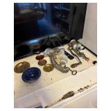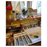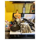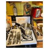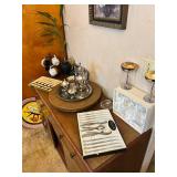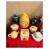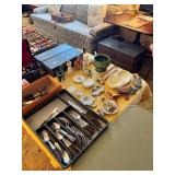 - mid mod beehive cookie jar, barware, utensils, silverware sets (i.e. MCM, Aurora, atomic), knife sets, cookware etc